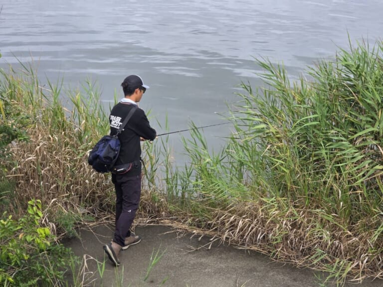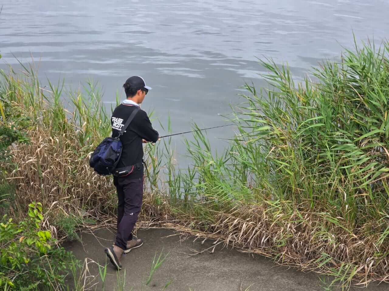 まずはアシの壁沿いにドライブショットを投げ入れ、リアクション気味にアプローチ。そしてメタルブレードジグへとローテーションしていく。