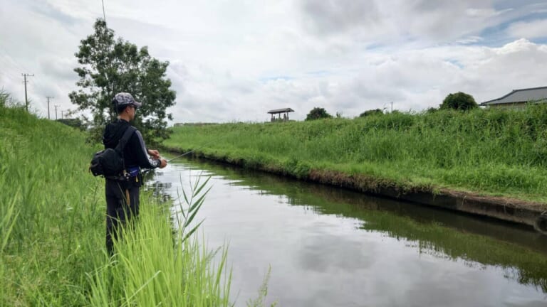 対岸の護岸シェードにはMMZデカのダウンショットを入れてトゥイッチ。足元カバーにはオリカネムシⅡのジグヘッドを撃つ。