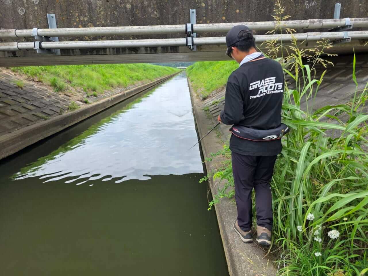 護岸が続くエリアなのでレッドカブを岸沿いに泳がせていく。