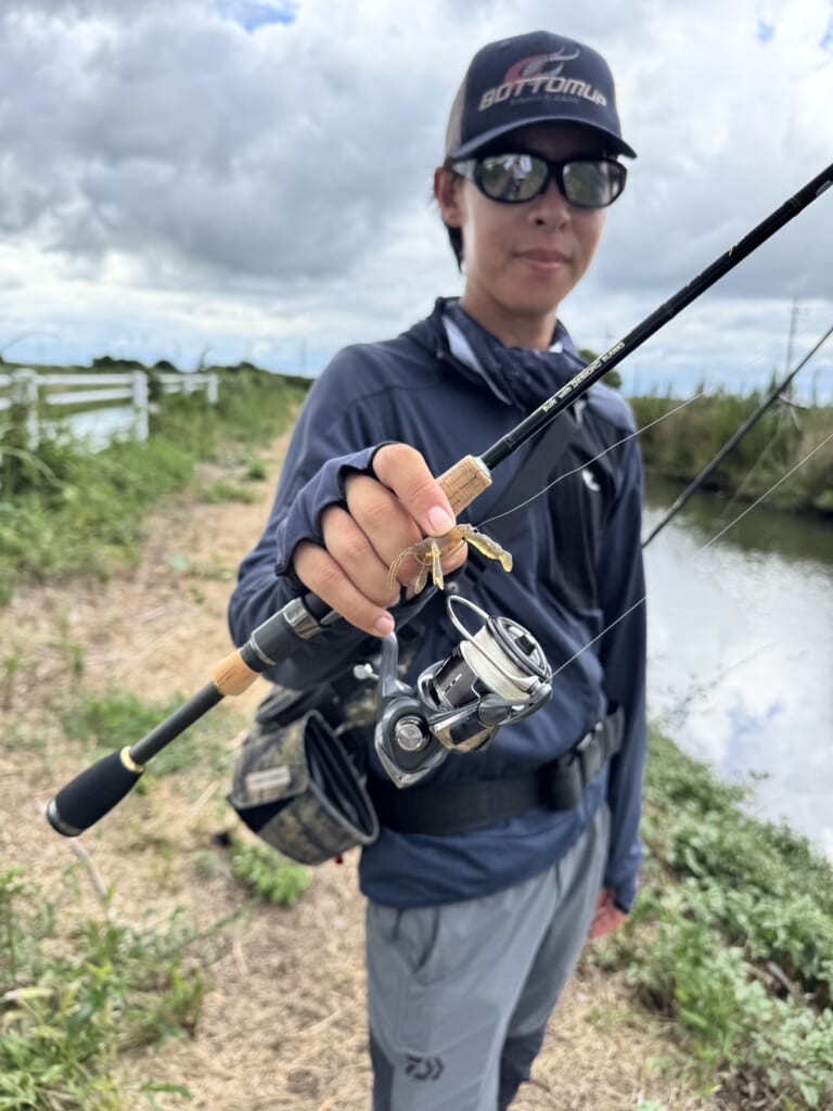 「今日ハマってるエビソンなんですけど、午前中はネイルを0.2g、風も出てきたんで0.4gにたしてるんです。」