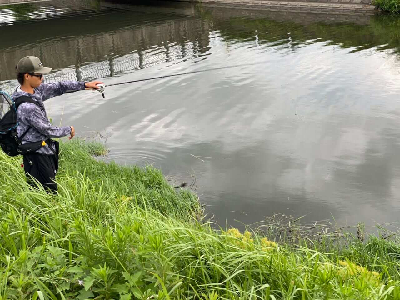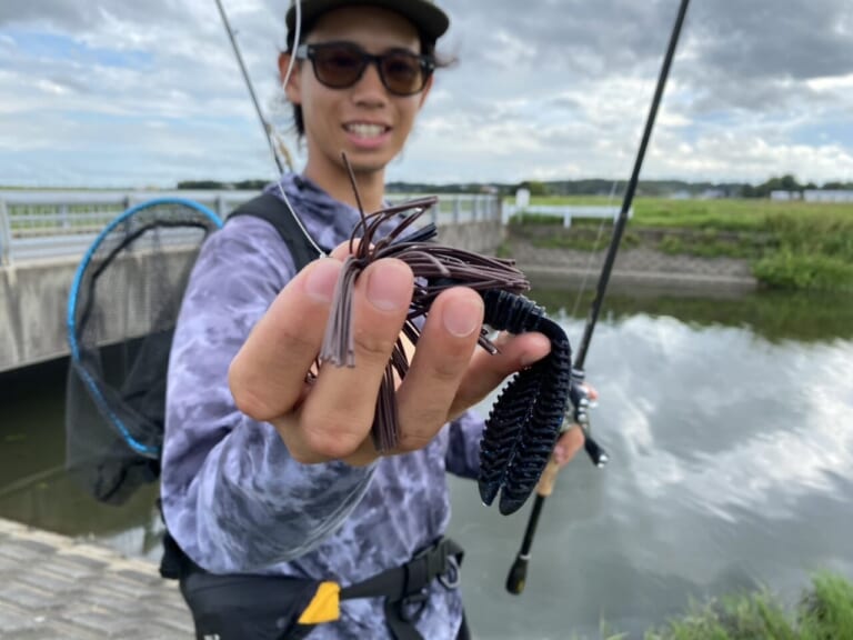 アナーキー14gにリビングバニー3.8inと強気のセット。巻きモノタックルも持ち、ベイト二枚看板で南水路制覇に賭ける。