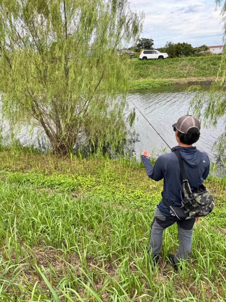 自分の釣りとフィールドの状況を踏まえ、15分ほど車を走らせ夜越川へ。道中、妙義水道でまさかの草深さんがバスボートから手を振ってくれた。