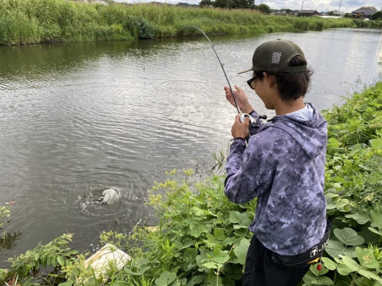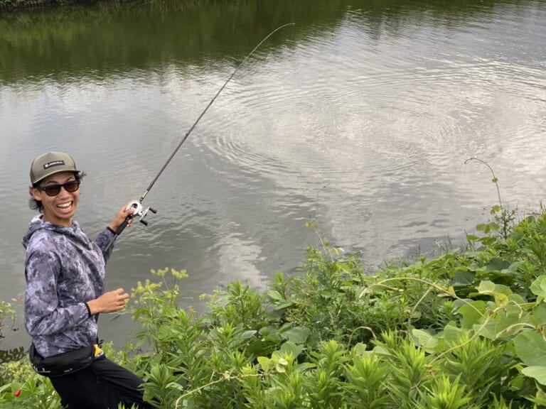 上がってきたのはライギョ!水から上げずに丁寧にリリース。